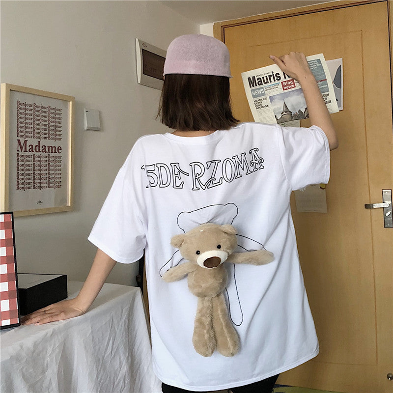 #LooseFit #BearTShirt #3DDesign #WhimsicalFashion #CasualWear #ComfortableStyle #TrendyTee #FashionForWomen #GraphicTee #FunFashion #UniqueDesign #EverydayFashion #ChicStyle #WomensClothing #CasualOutfit